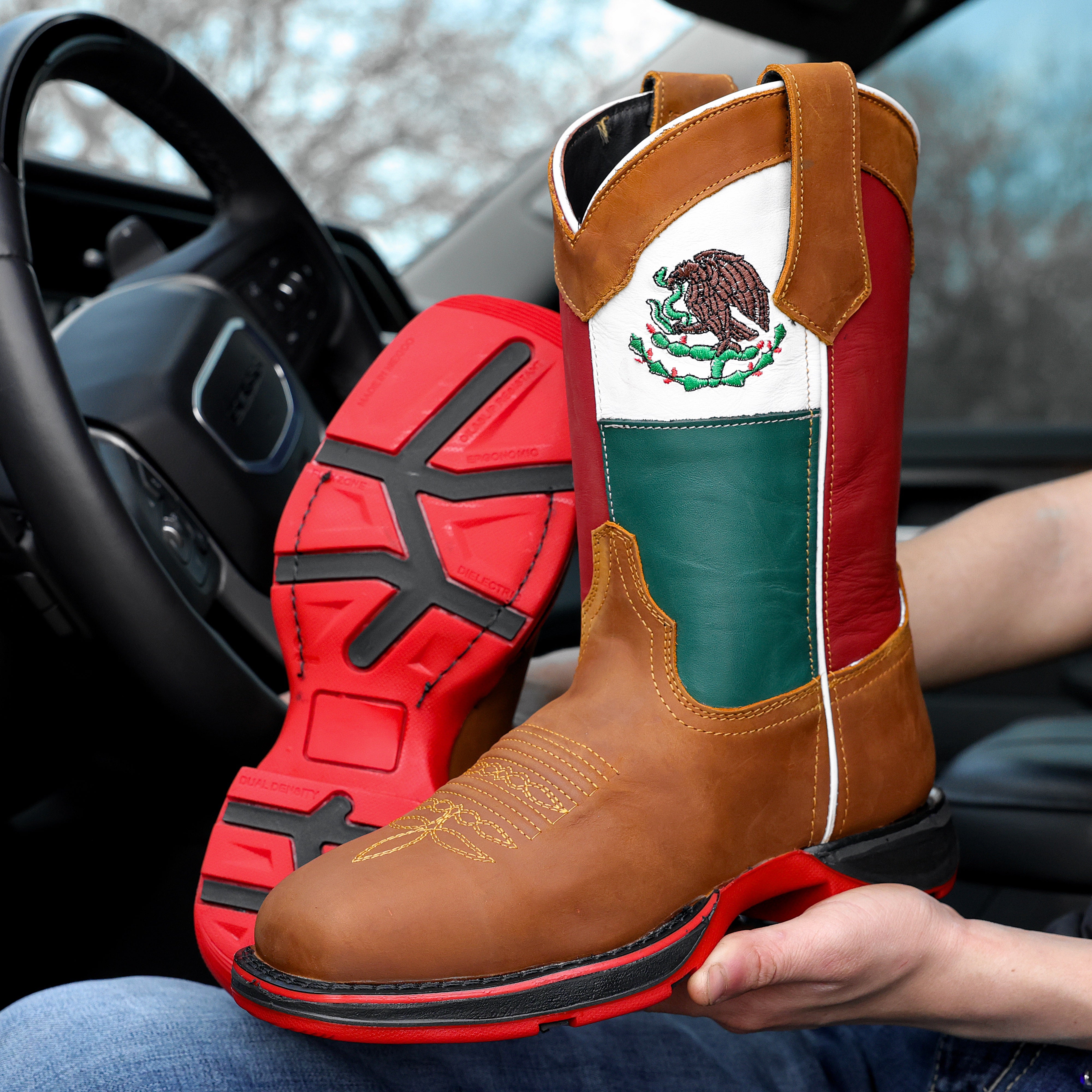 Brown MEXICO Flag Leather Work Boots - Composite Toe