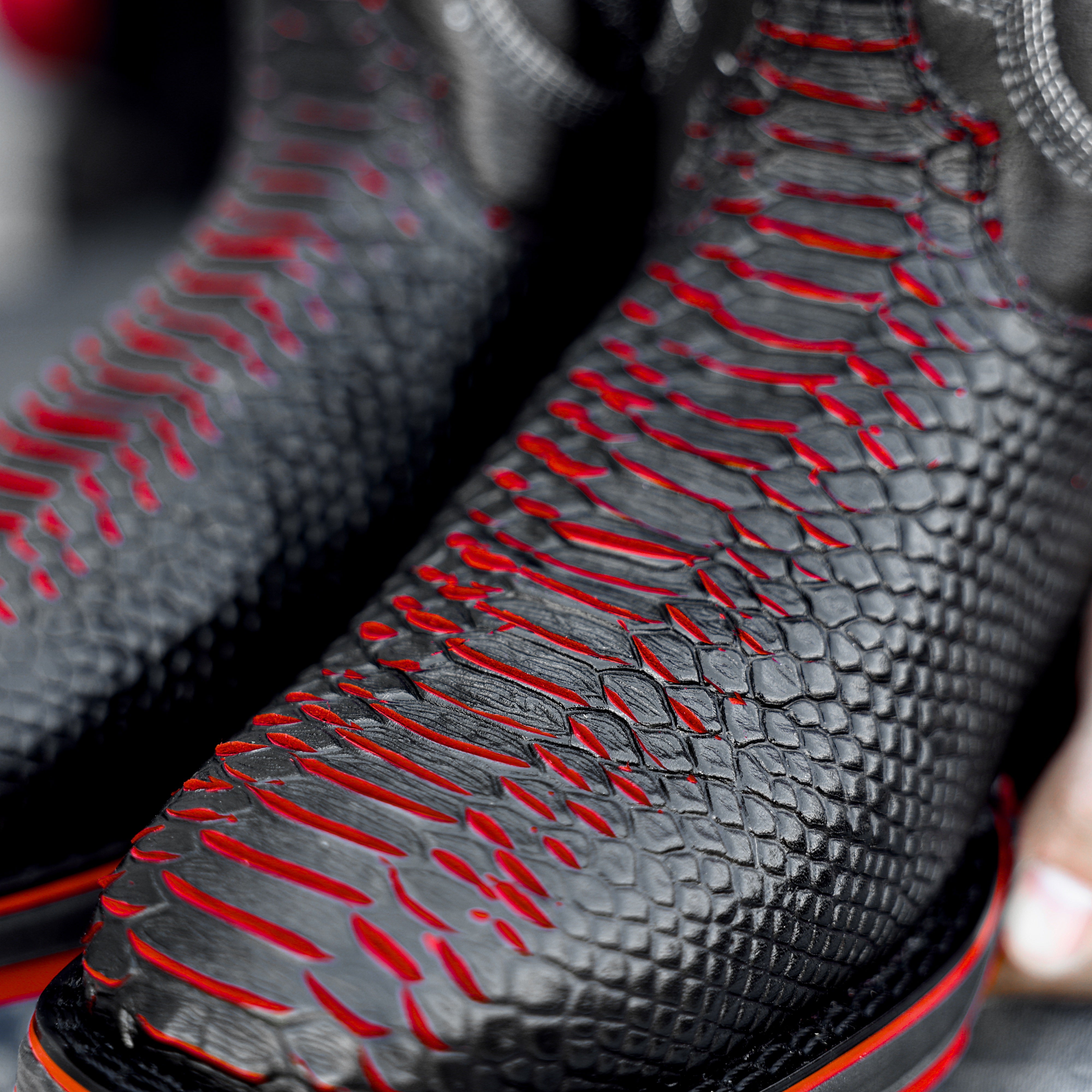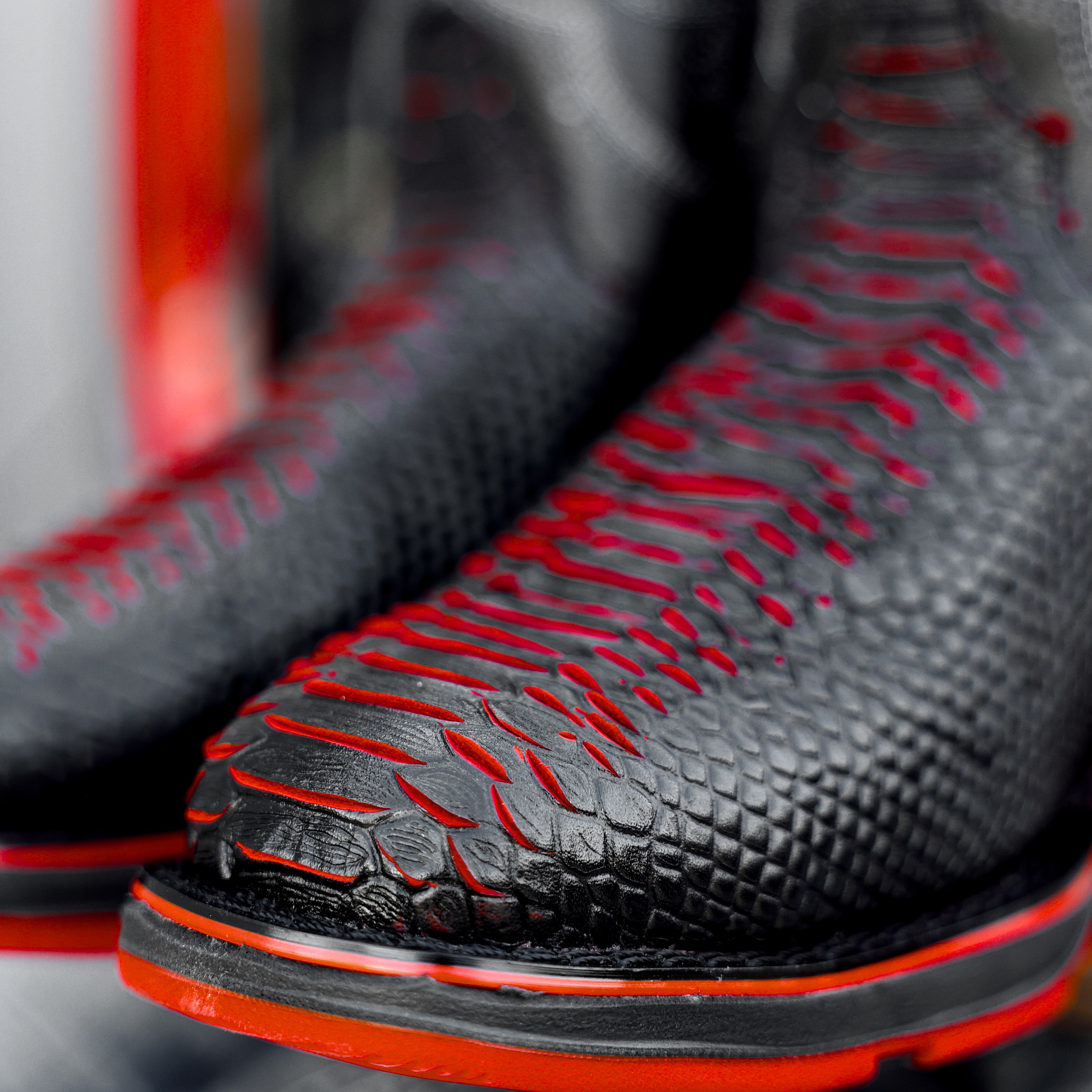 Black Anaconda Leather Boots With 3D Lightweight Sole - Composite Toe