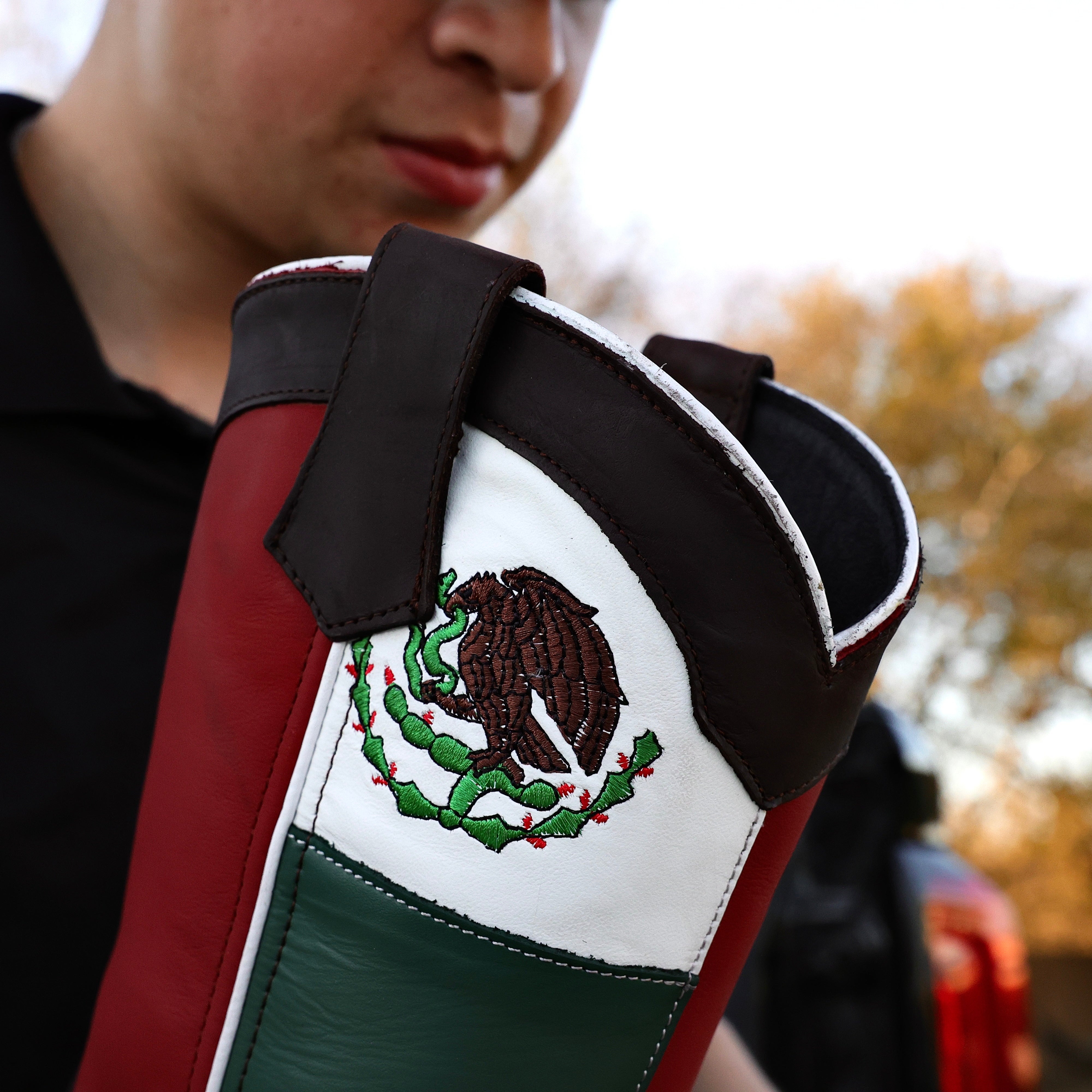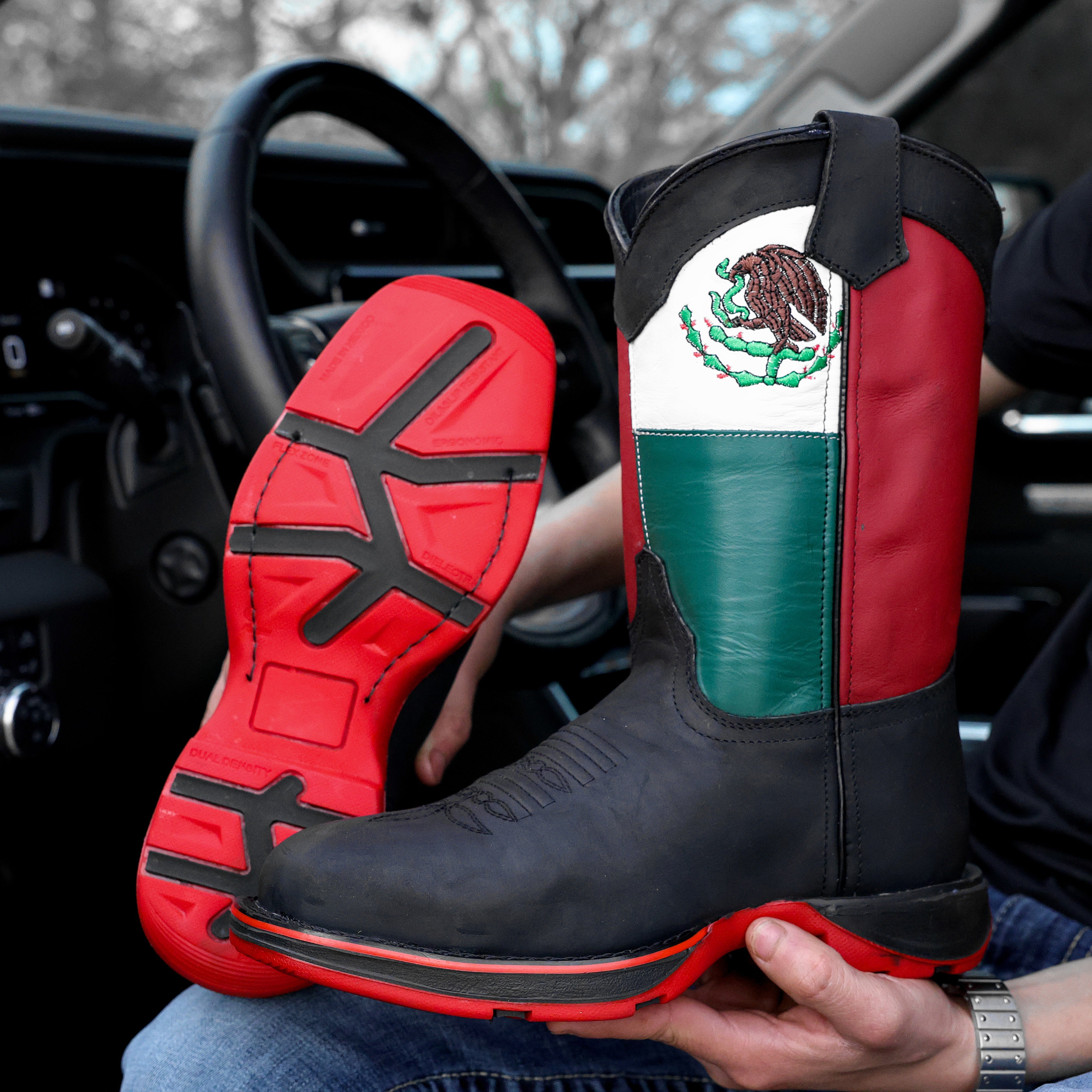 Black MEXICO Flag Leather Work Boots - Composite Toe