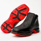 Matte Black Python Leather Botin With 3D Lightweight Soles - Square Toe