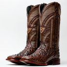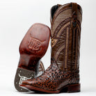 Brown Caiman Neck Leather Boots - Square Toe