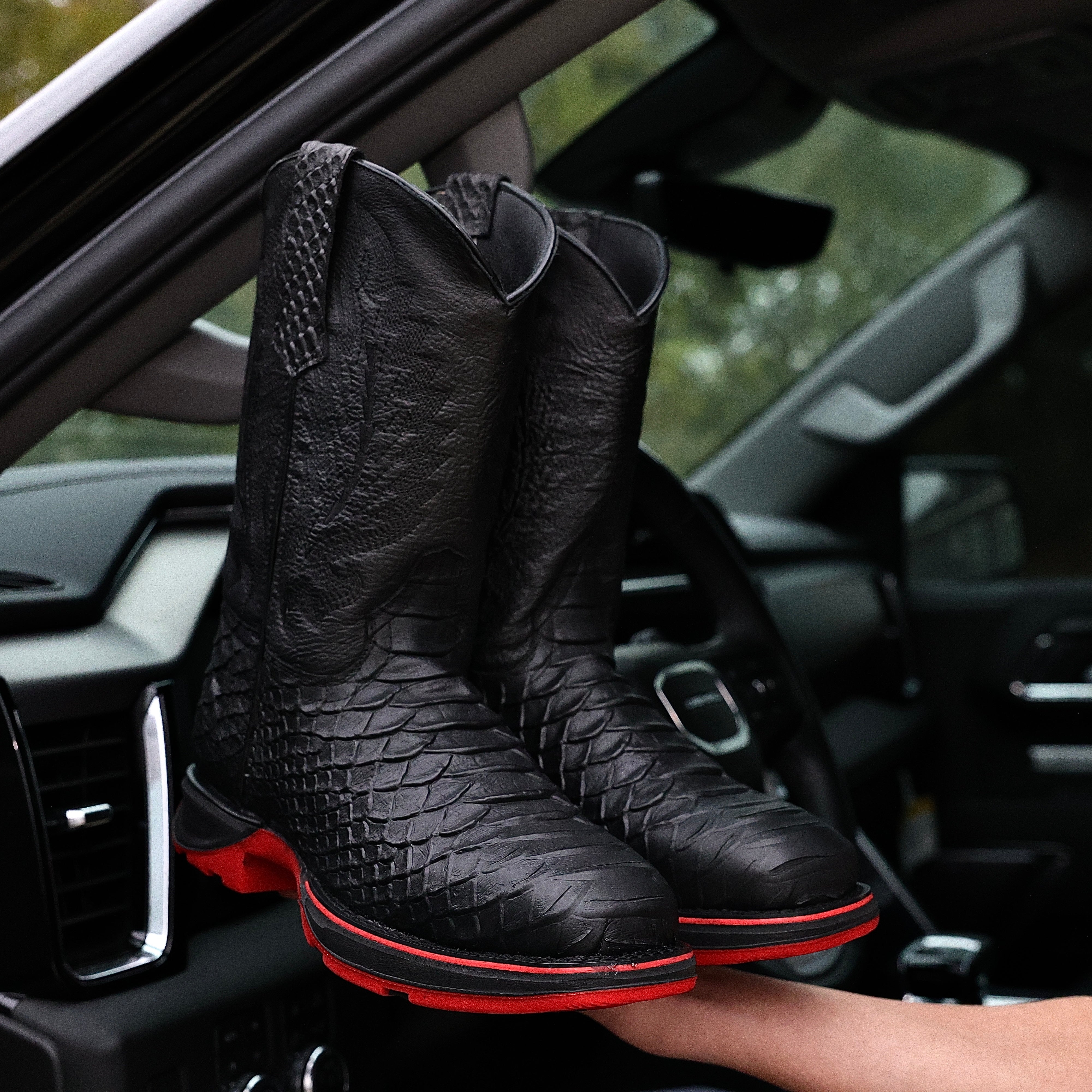Matte Black Anaconda Leather Boots With 3D Lightweight Sole