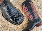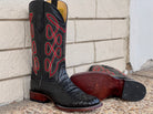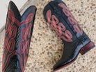 Men’s Black Crocodile Leather Boots With Black Shaft With Red Embroidery