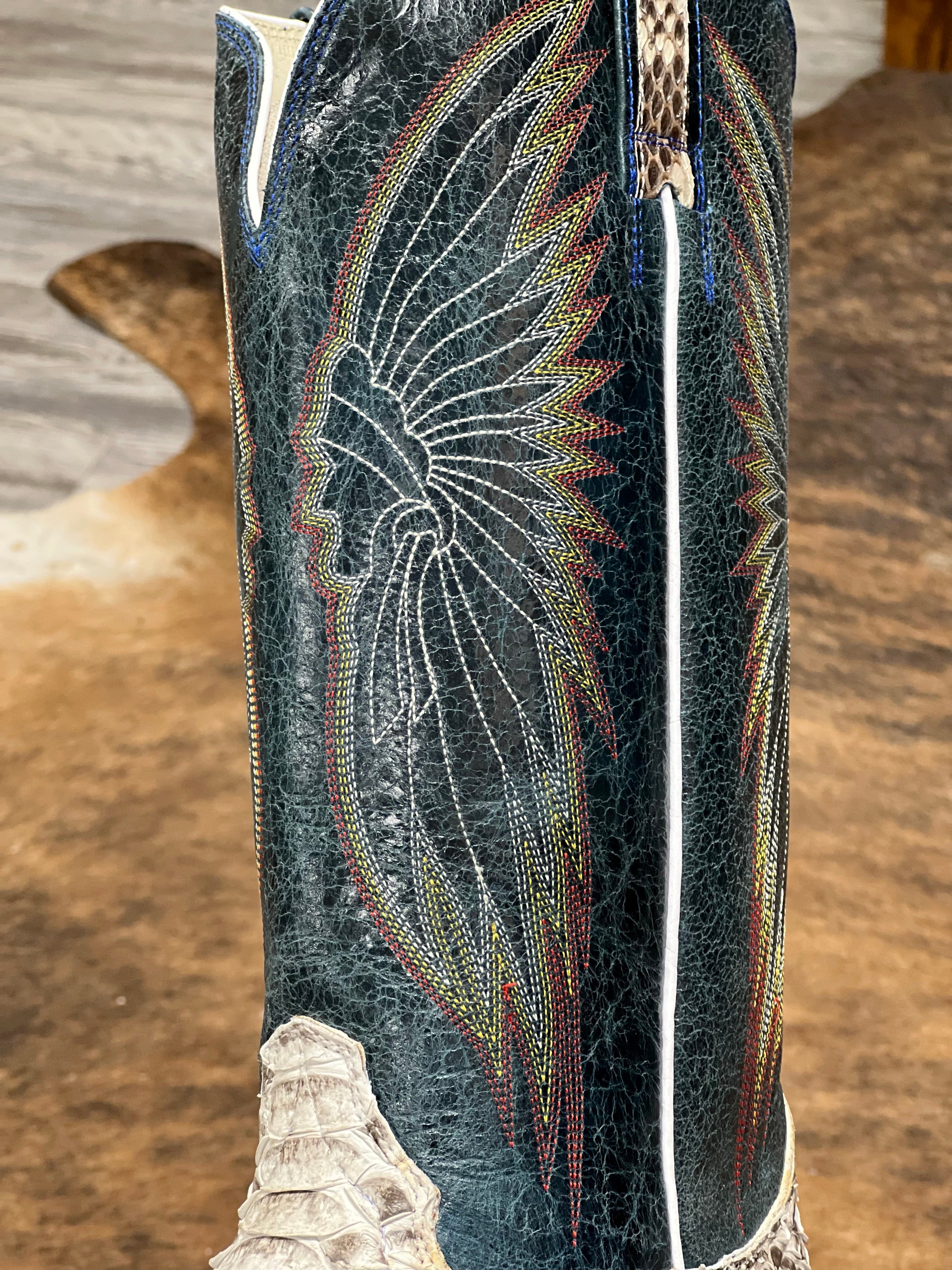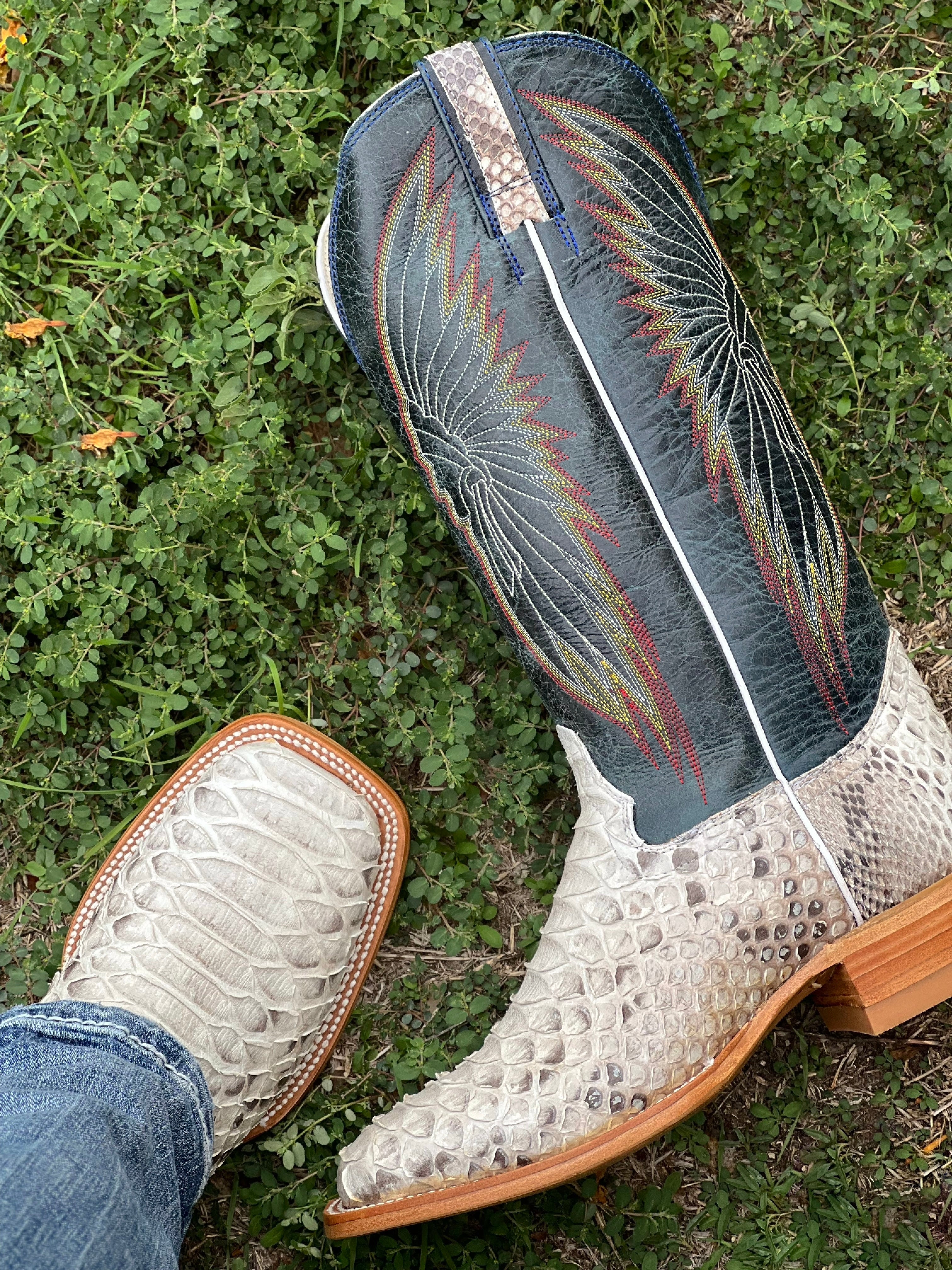 Men’s Genuine Natural Python Boots With Blue Shaft