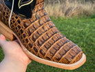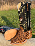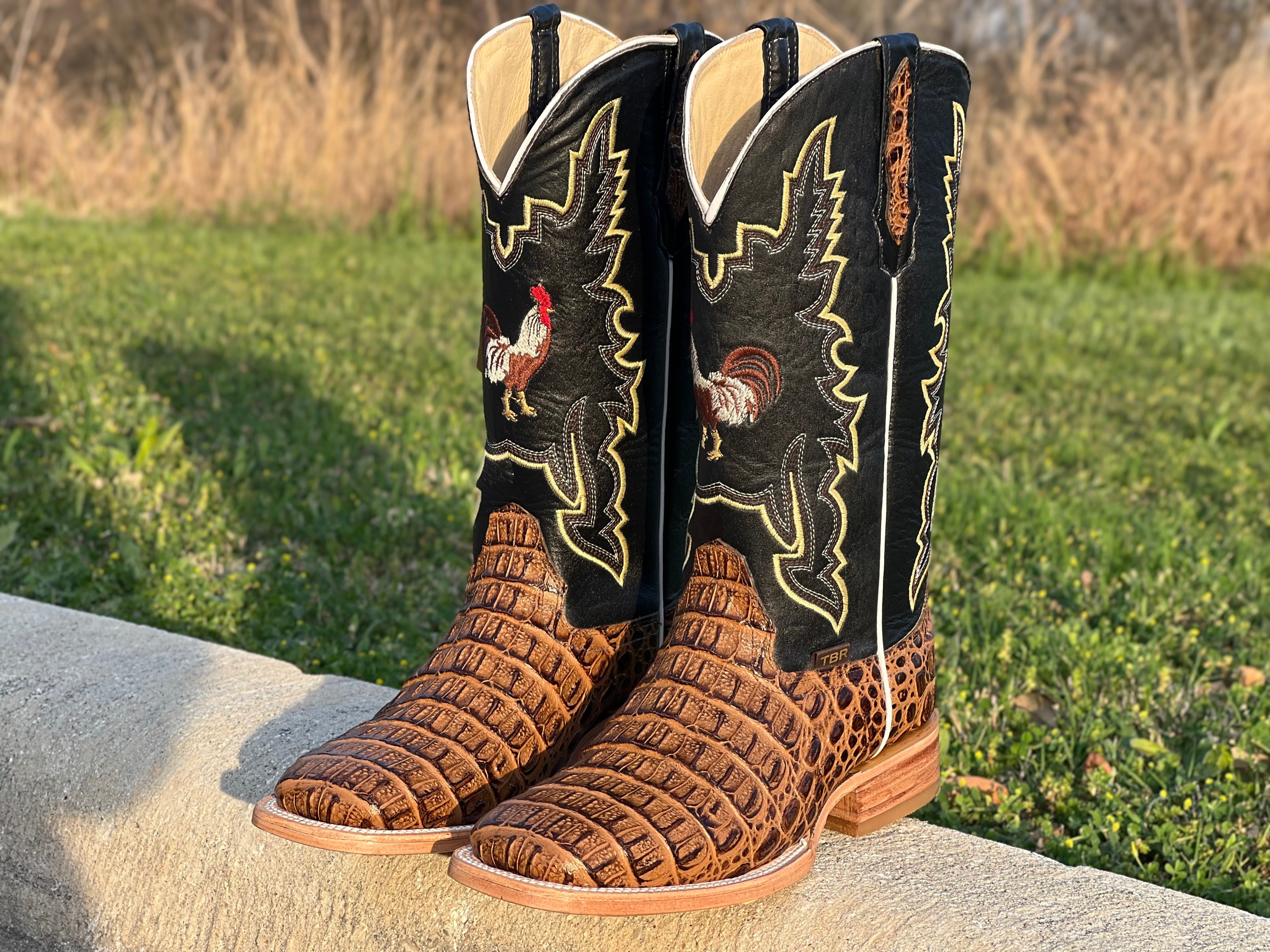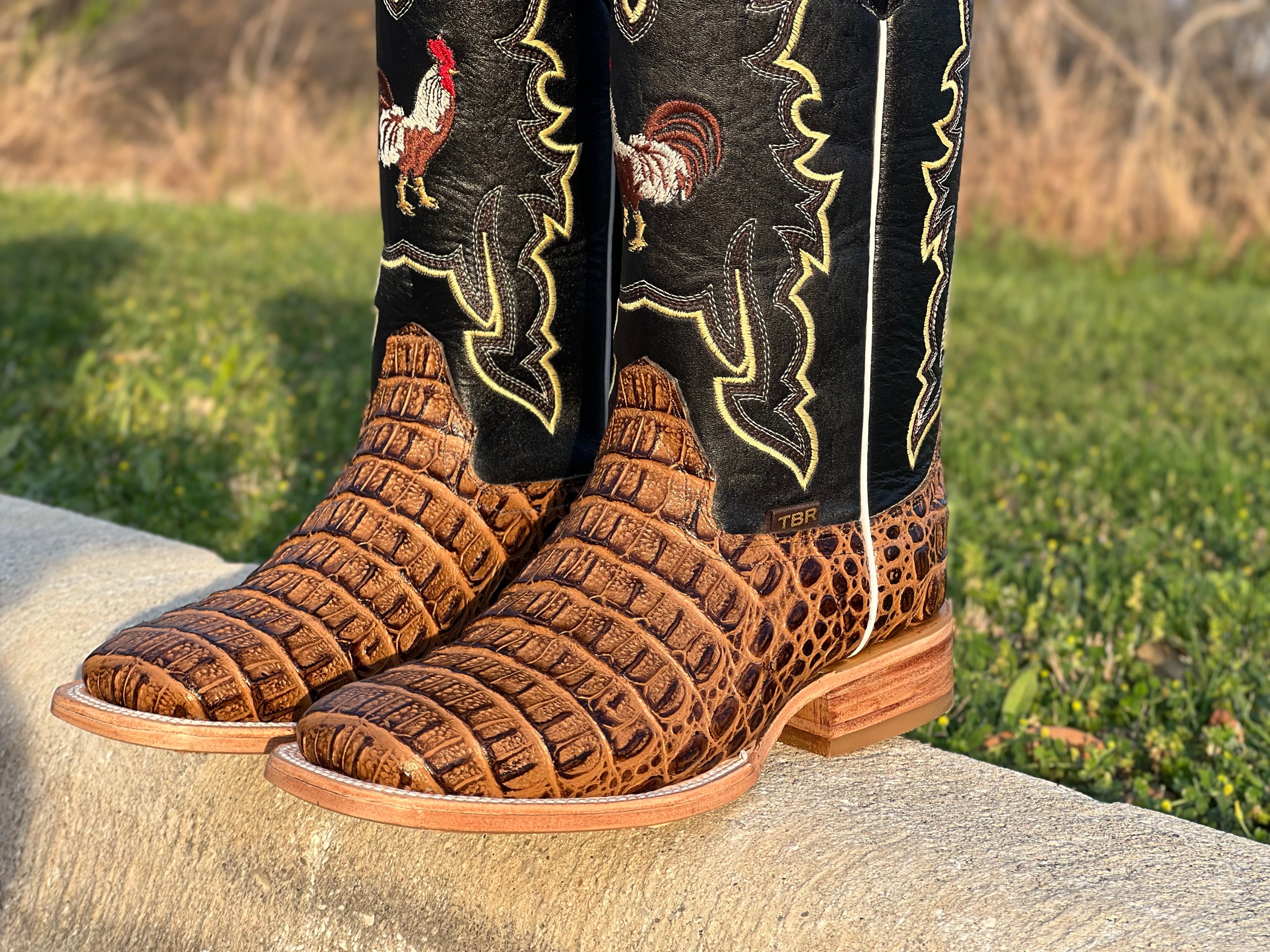 Men’s Honey Crocodile Horn-Back Leather Boots With Rooster/Black Shaft