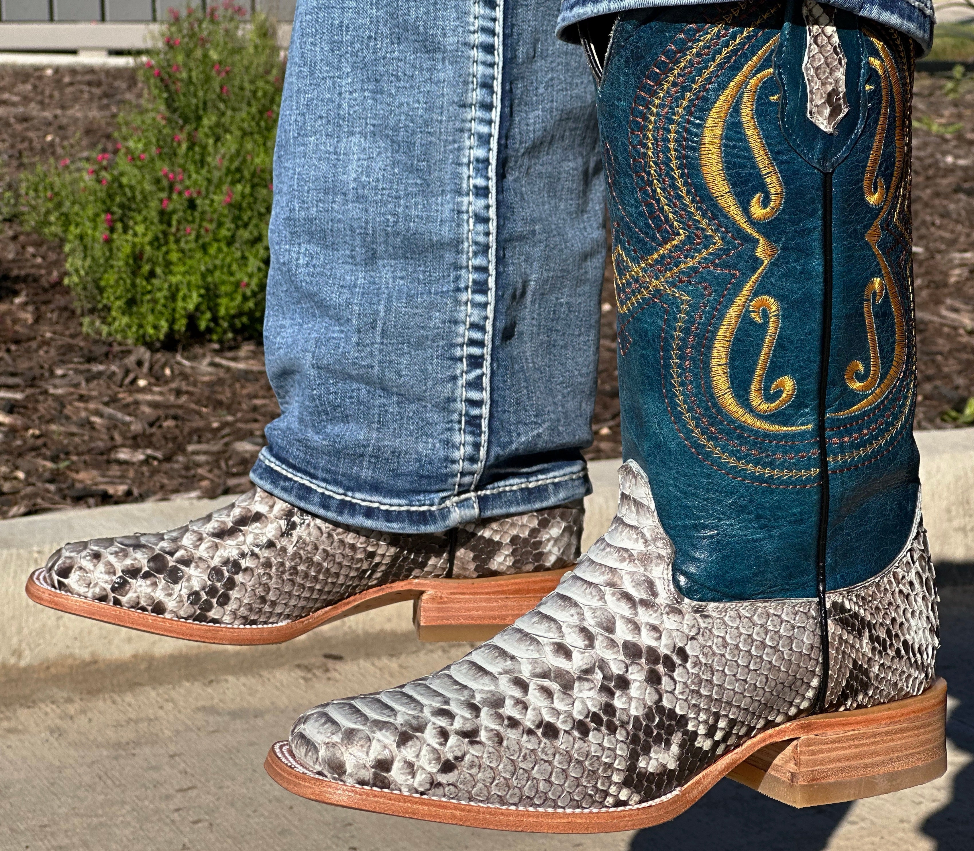 Men’s Natural Python Exotic Boots With Bule Shaft