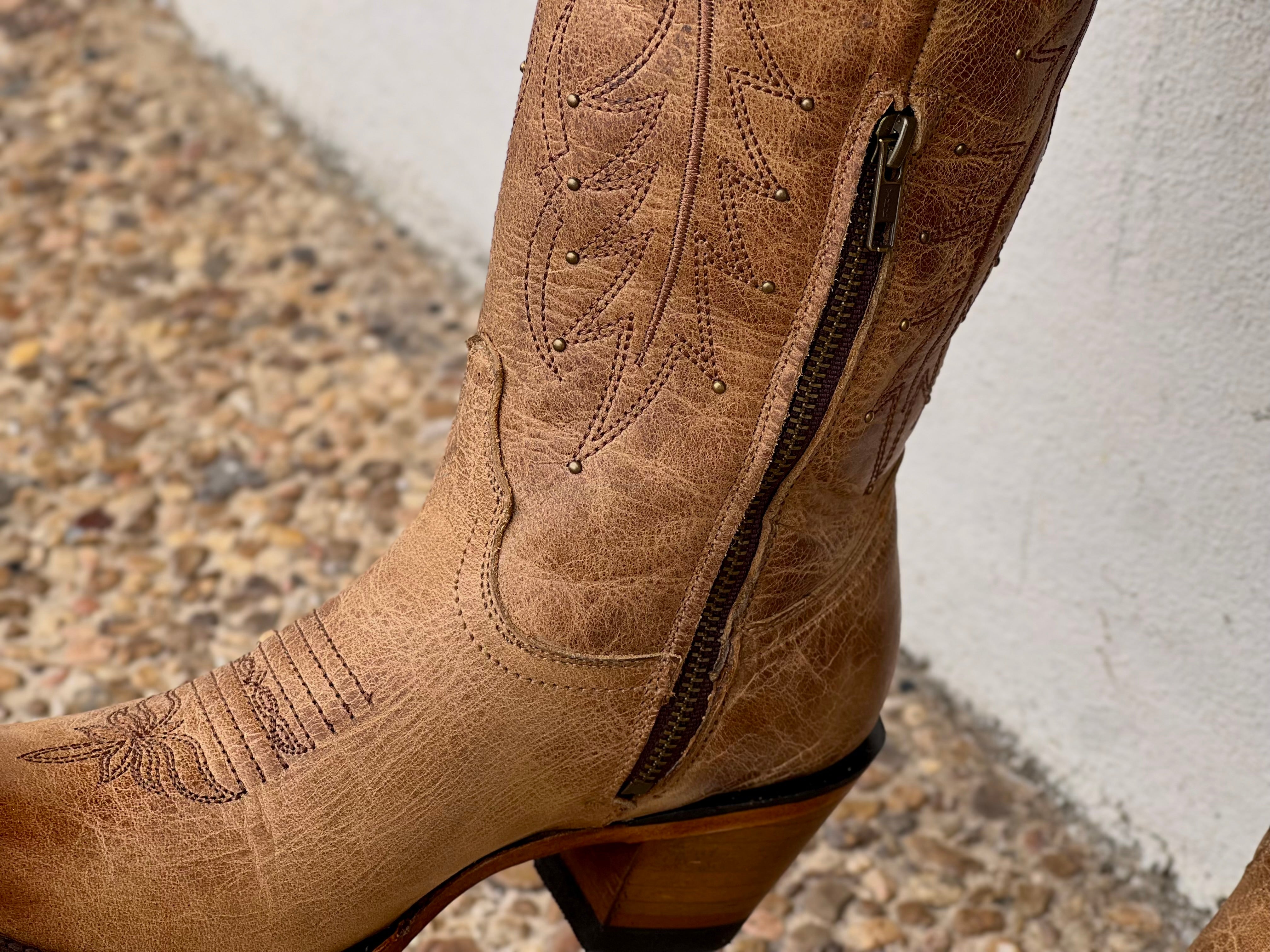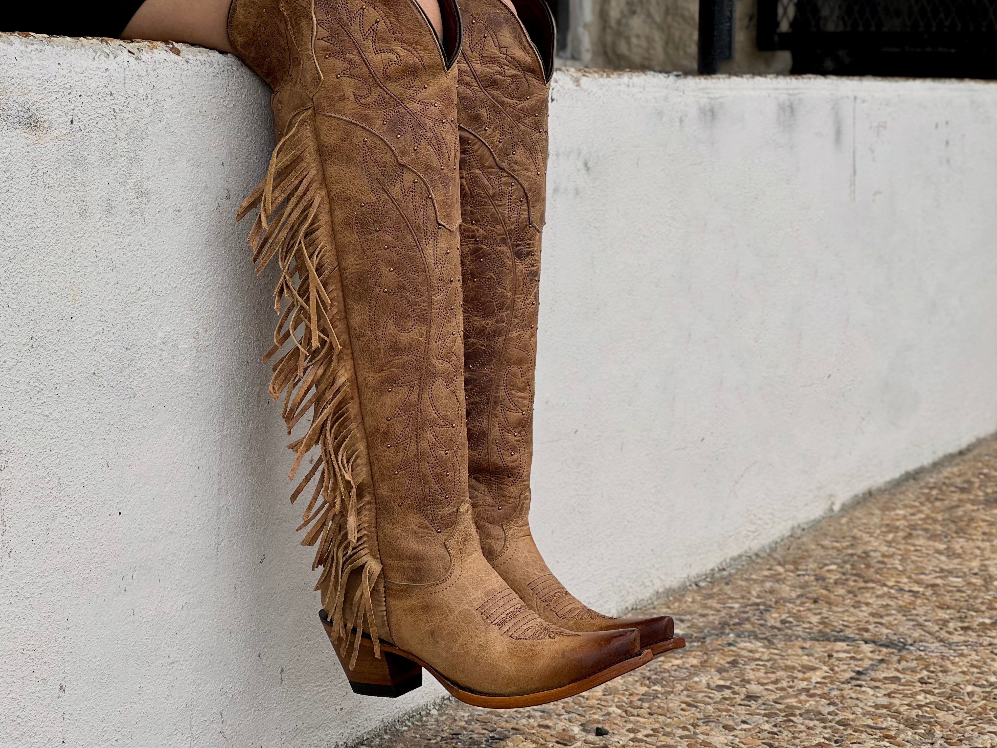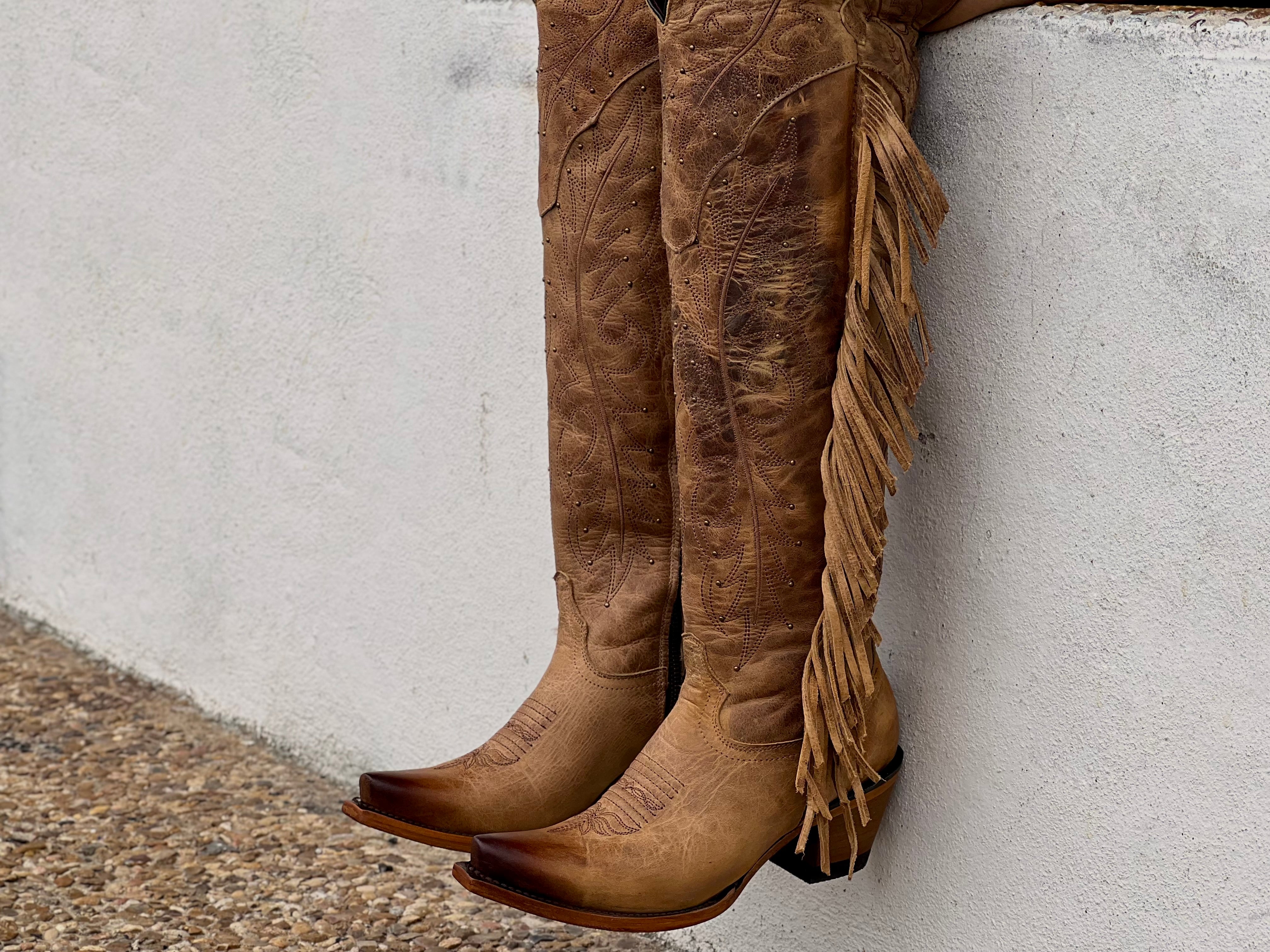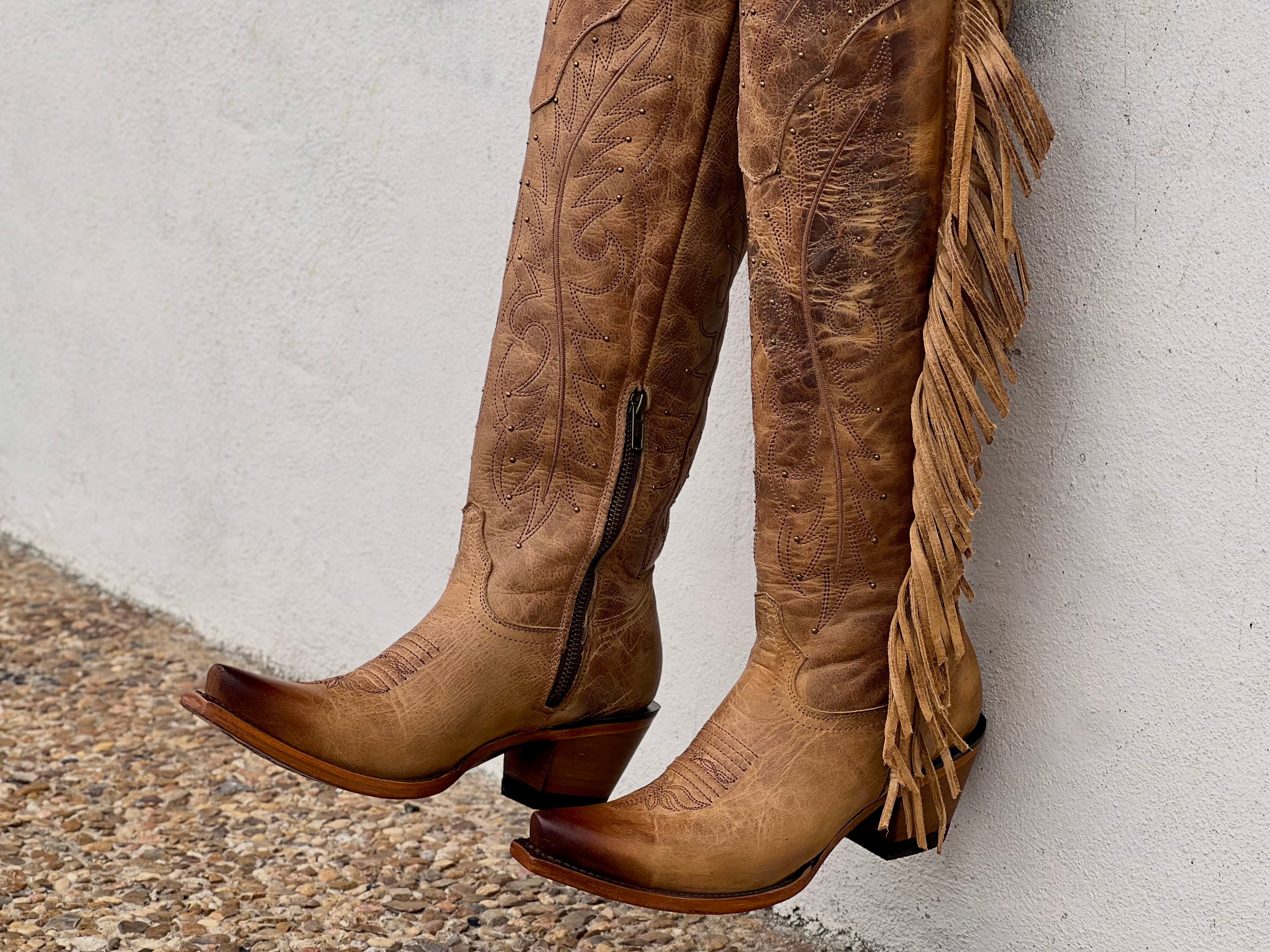 Women’s Honey Rustic Leather Boots With Fringe