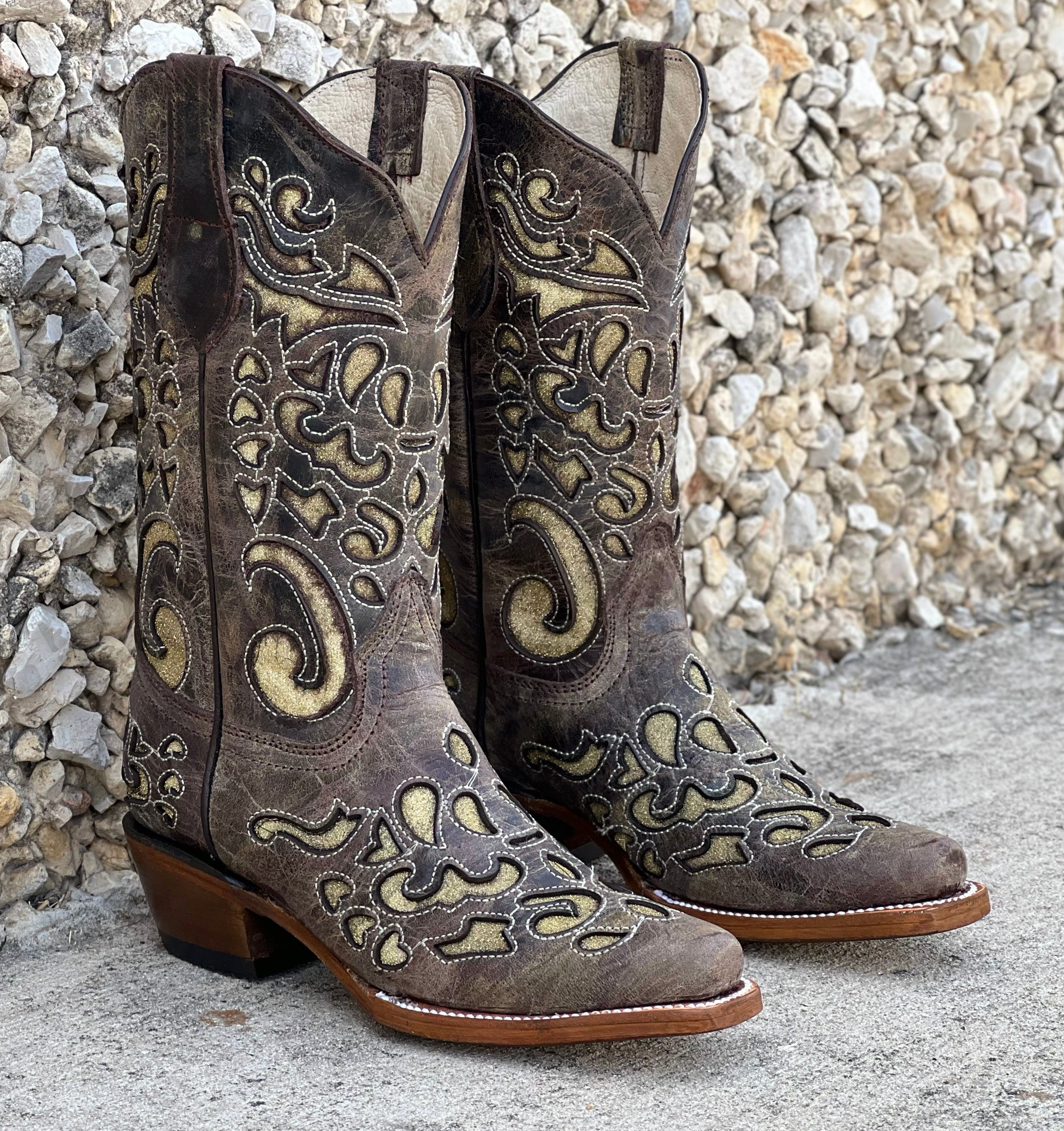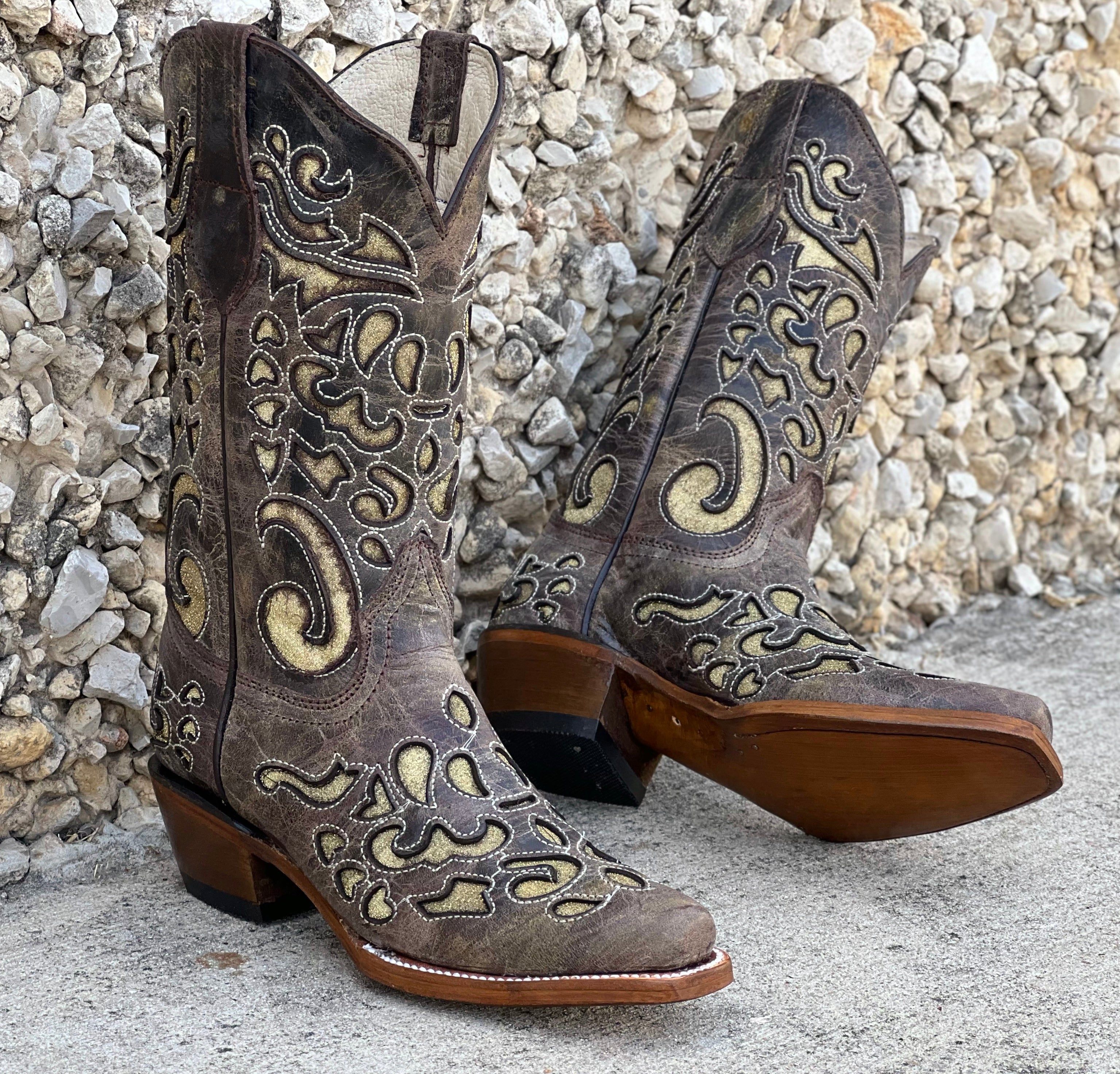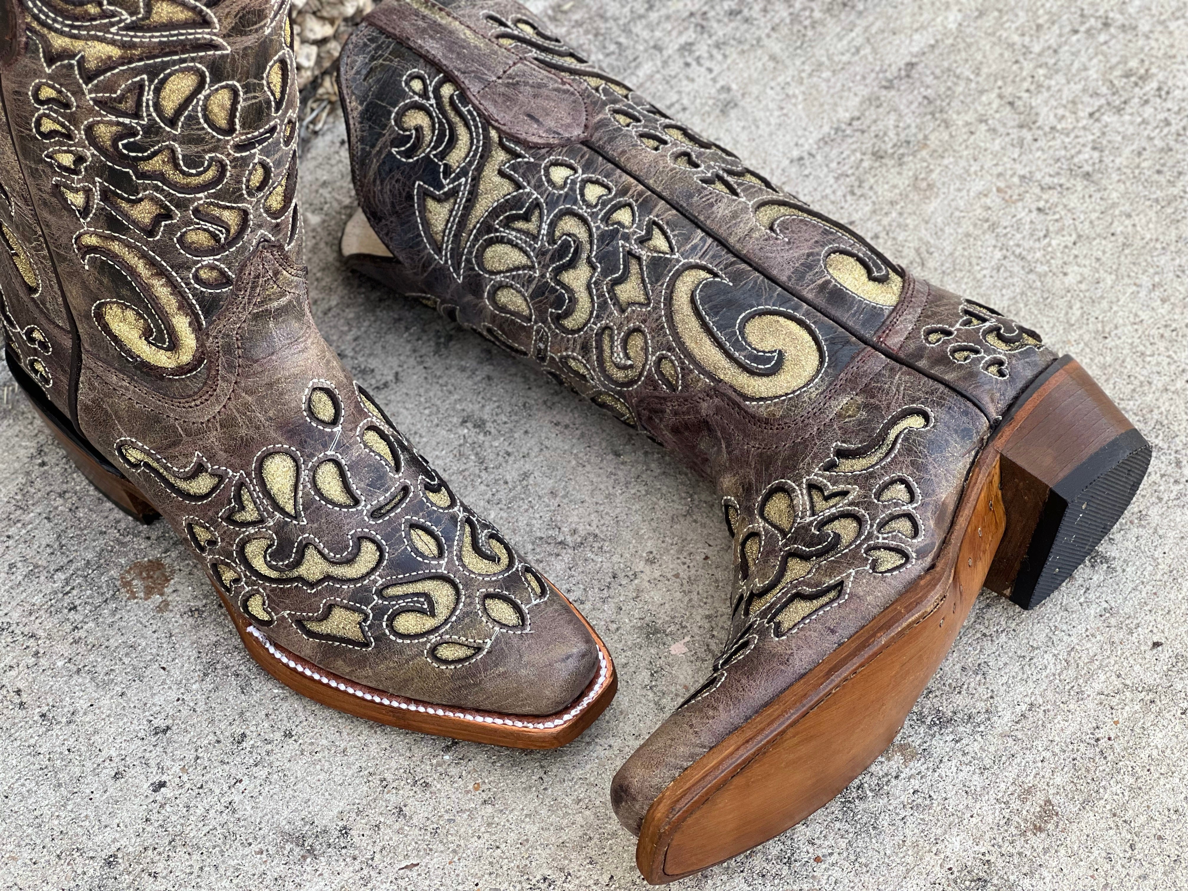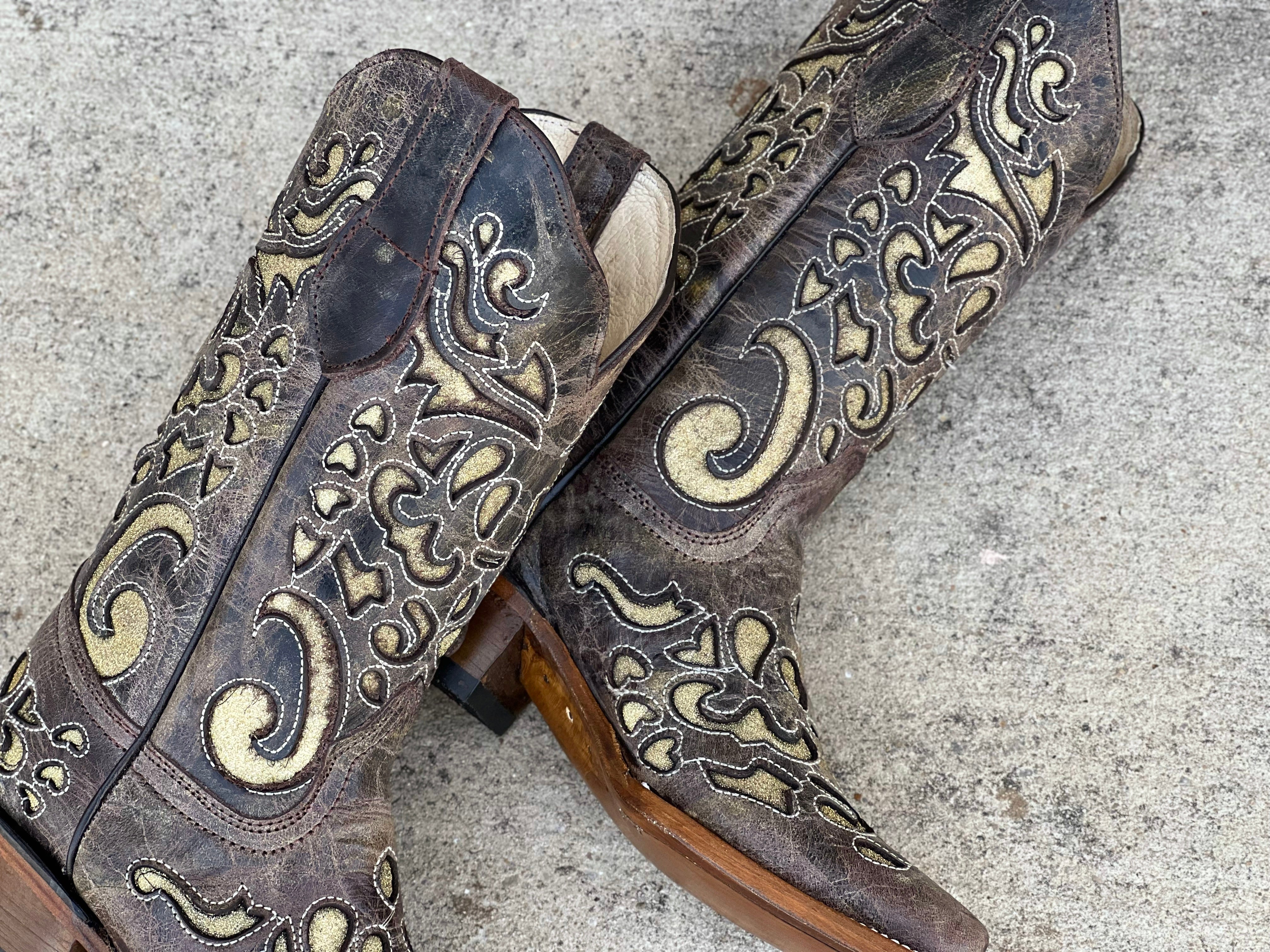 Women’s Rustic Leather Boots With Gold Inlay