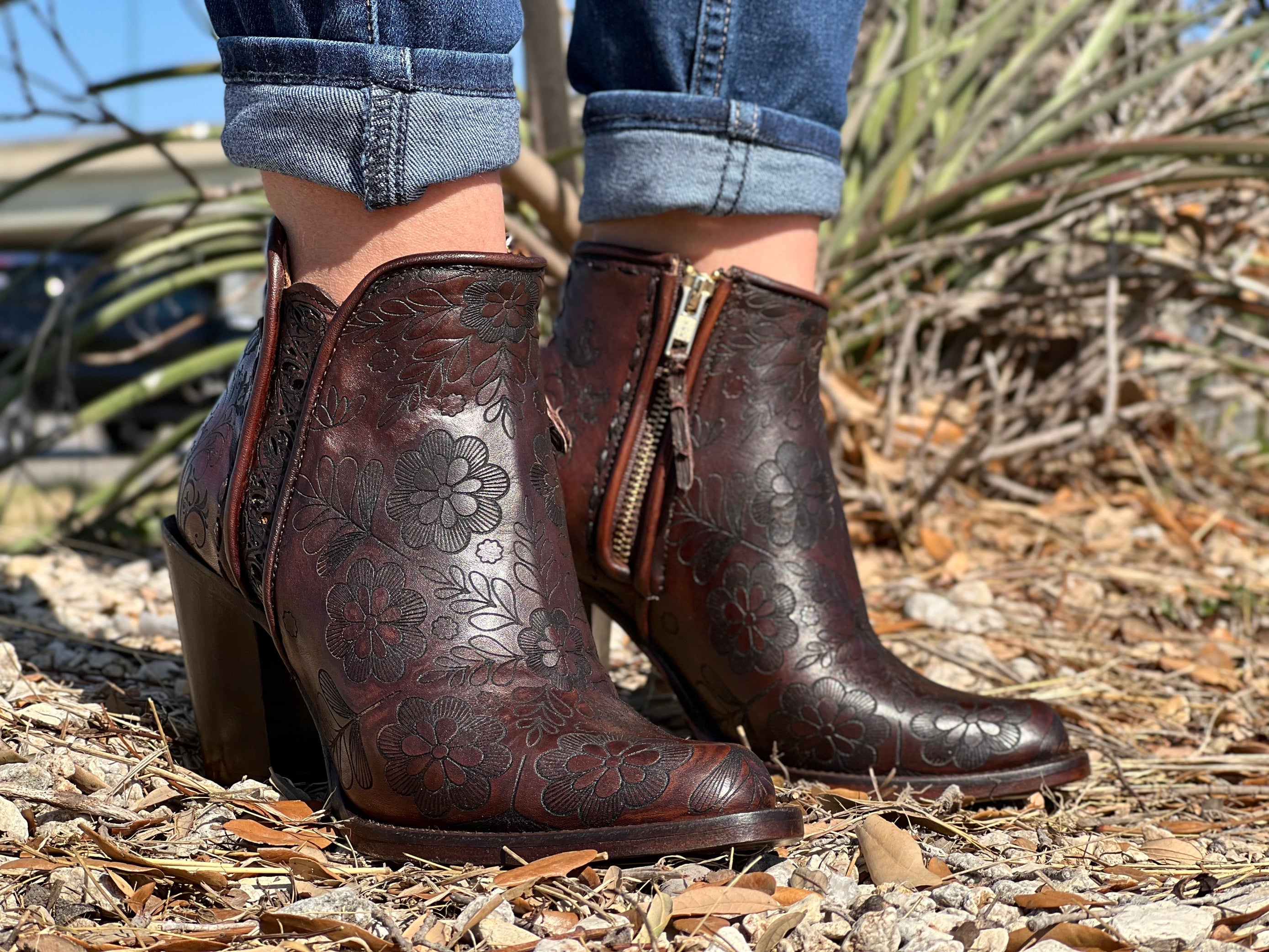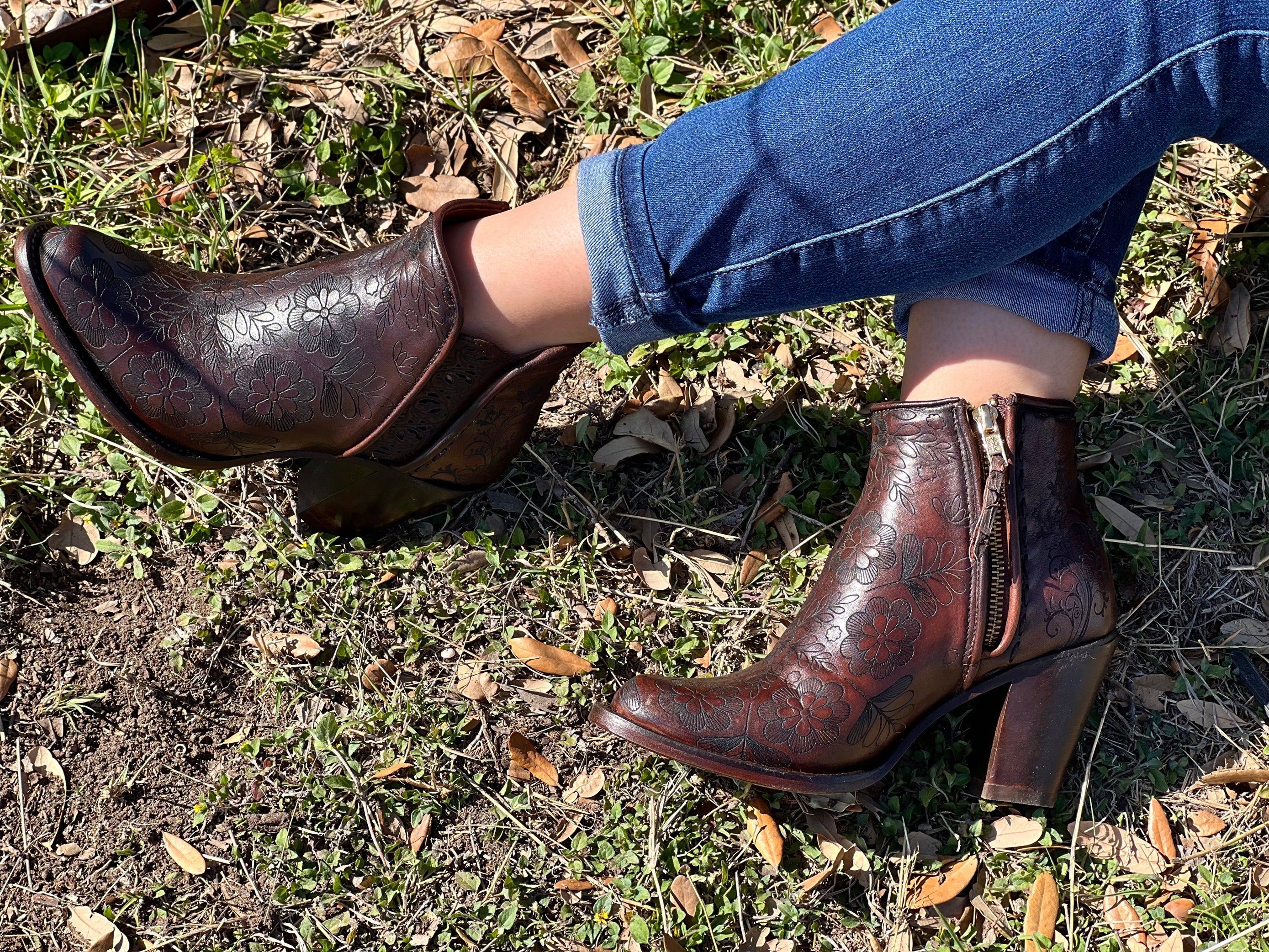 Women’s Wine Color Ankle Boots With Flowering Artesanal
